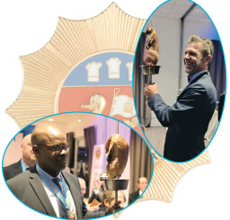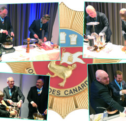 Then, a very tasty cocktail with cold and warm appetizers was served in a friendly and cheerful atmosphere. Then it was time for the meal, prepared jointly by the staff of La Bertelière and Coudray Traiteur, which started with Melon Gazpacho and Turbot. Then, two teams of Master Canardiers from Coudray Traiteur and Guéret Traiteur prepared Rouennaise Duckling in front of the guests, especially the inductees, who would not have missed it before savouring it. The meal ended with Cheese and Chocolate Succès and finally, the guests moved to the dance floor and enjoyed the music in a very cheerful atmosphere.
