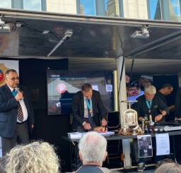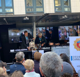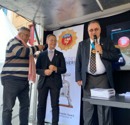 Rouen’s city centre traditionally turns into a market for a week-end, in October. This year again, the Canardiers were present and a demonstration of Rouennaise Duckling was performed by Master Canardiers Jean-Jacques GANON and Jean-Paul LAVISSE on the stall of Gas Company GRDF. This event was attended by a good many interested on-lookers who longed to taste a sample of the dish.