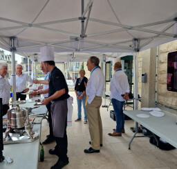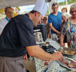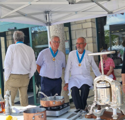 The Ordre des Canardiers participated in Duclair’s Duck Festival in order to promote Rouennaise Duckling. The numerous visitors were given the opportunity to see 2 demonstrations, performed by Master Canardier Gilles HAUVILLE, Founding Member, and Master Canardier Arnaud GENTY, Chef-owner of “Le Parc”, in Duclair, who brought his own press. Vice-President Philippe DUJAY gave the details of the recipe and, as usual, the numerous visitors were offered a sample of the dish.