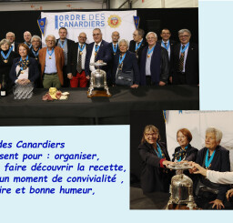 It is always pleasant to welcome a crowd of attentive, curious and gourmet people. Each time, 25 guests were able to watch Master Canardiers at work and to try a sample of the dish with a glass of wine offered by a wine-grower to match the recipe. Members of the Ordre were also present to serve the guests and answer their questions.