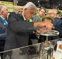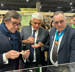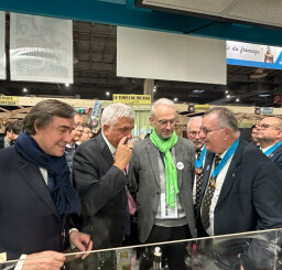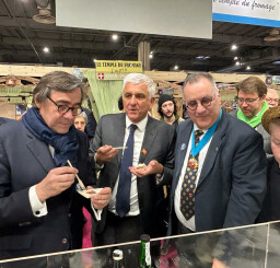The Canardiers have been used to being present on the stand of the Seine Maritime Département at the Farm Show held in the Paris Exhibition Centre. Thirteen of them came along on February 26th in order to present the recipe of Pressed Duckling. Master Canardiers Loïc LELIEUR, Jean-Paul LAVISSE and Corentin SALI performed the demonstration 4 times in front of delighted visitors, who were offered a sample. One of the demonstrations was attended by Jean-Benoît ALBERTINI, Prefect of Normandy, Hervé MORIN, President of the Normandy Council and Bertrand BELLANGER, President of the Seine-Maritime Council, which was an opportunity for the Canardiers to talk about the duck breeds from Rouen and Duclair