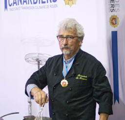 This show is used to taking place mid-November and is dedicated to local produces. As usual, the Ordre des Canardiers was present and gave the visitors the opportunity to see three demonstrations of Rouennaise Duckling, one per day, thanks to Master Canardiers Pierre GUERET, Julien MARCHAL-GUERET, Gilles HAUVILLE, Jean-Jacques GANON and Jean-Paul LAVISSE. Each time, a group of 30 visitors were invited to watch the different steps of the recipe and try a sample. The exhibitors were also offered the possibility to attend an extra demonstration before the show opened on the last day.