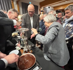 One of the Canardiers’ mission consists in promoting the recipe in different public events. Therefore, they went to Saint-Aubin-Epinay’s special exhibition « An Extraordinary Journey into the Abyss », where Master Canardiers Jean-Jacques GANON and Loïc LELIEUR prepared Rouennaise Duckling, assisted by members of the Ordre. Two hundred and fifty portions were served to the visitors, among whom Mrs Annie VIDAL, Member of Parliament, and Mr Benoît ANQUETIN, the mayor of Saint Aubin Epinay.