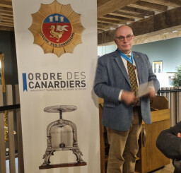 A Canardier dinner took place on November 17th and gathered about forty guests at “Café Hamlet”, a new restaurant located in Aître Saint-Maclou and owned by renowned chefs Gilles TOURNADRE and Philippe COUDY. After the aperitif, the guests had Oxtail Terrine with Foie Gras, Scallops from Normandy and Dessert, served with white and red wine from Sancerre.