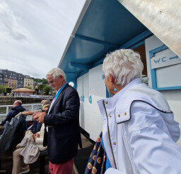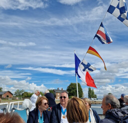 In the afternoon, everyone boarded “L’Aventura” for a cruise that took them up the River Seine to the Pont de Normandie, and then back to Honfleur. Despite the sunshine, let us say that the sea was quite choppy and offered its best waves to some of the passengers…