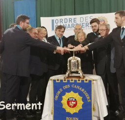 The members of the Ordre des Canardiers gathered at Rouen’s Halle aux Toiles on March 25th in order to hold their 33rd Festival. It started with the induction of new members (Gentlemen Canardiers, Lady Canardiers, Master Canardiers and new members of the Board), followed by two special inductions : Master Canardier Romain BAPST, from Brisbane, was inducted Consul for Australia while Bertrand BELLANGER, President of the Seine-Maritime Council was made Canardier of Honour. All the new inductees were given a warm welcome.