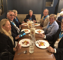 La matinée du samedi 14 octobre était consacrée à notre Assemblée Générale dans les locaux de la Maison des Associations de Rouen. Cette réunion fut suivie d’un repas au restaurant La Galerie, qui se trouve près de la place du Vieux Marché. Une petite trentaine de membres se retrouvèrent dans ce sympathique établissement pour déguster une chiffonnade de volaille avec crème de champignon, huile de truffe et épices du trappeur, puis un dos de cabillaud aux aromates, ratatouille et jus d’herbe, avant de terminer par une déclinaison de fruits exotiques, biscuit au safran et quenelle de sorbet aux fruits rouges. Un grand remerciement à nos hôtes, qui nous ont permis de passer un très agréable moment