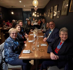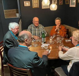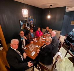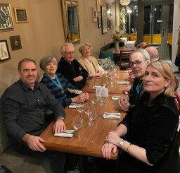 36 Canardiers se sont retrouvés le 14 mars au soir pour un dîner concocté par le Chef Bruno PORET. Jean LOISEL et Frédéric FOURÉ avaient géré l’organisation de ce repas nous ayant permis de déguster un tartare de crevettes roses aux herbes fraîches, curry de Madras et chips de pain suivi d’un pluma de cochon, réduction de veau à la sarriette, mousseline de légumes et écrasé de pommes de terre au sel fumé avant de terminer par un croustillant au carambar avec pointe de chocolat et quenelle de sorbet framboise. Le tout servi de façon très sympathique.