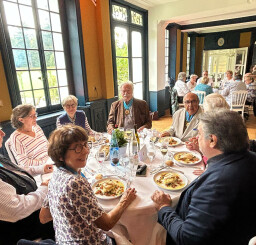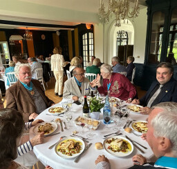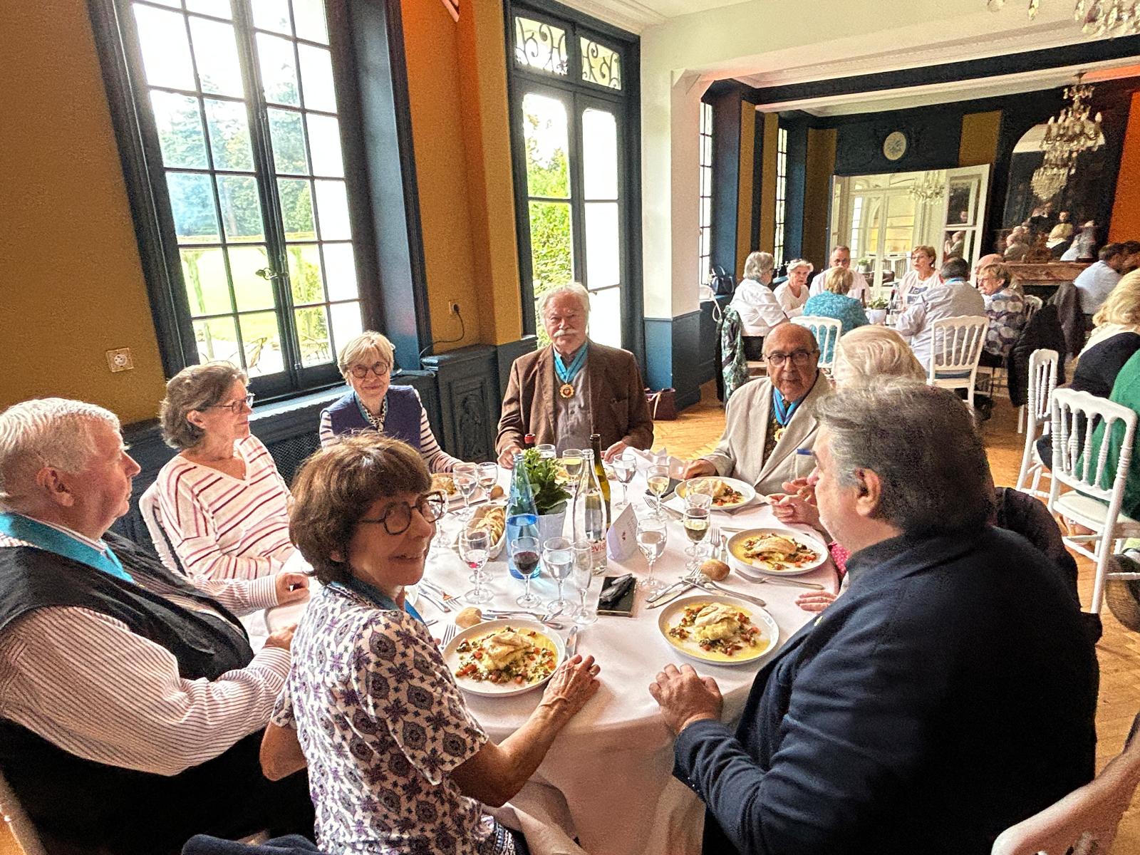 C’est au Château de Bertreville Saint Ouen situé à une vingtaine de kilomètres au sud de Dieppe, que les Canardiers se sont retrouvés en cette fin d’été. Nous avons été accueillis par Géraldine et Grégory, propriétaires, qui ont transformé le château en lieu de réception. Le temps clément a permis de prendre l’apéritif en extérieur avant de déjeuner dans la salle principale du château.