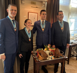 Paul Bocuse, surnommé « cuisinier du siècle » fut intronisé Maître Canardier d’Honneur par Michel Gueret peu après la création de l’Ordre. Presque 40 ans plus tard, l’Ordre des Canardiers se retrouve dans le restaurant de Collonges au Mont d’Or pour accueillir de nouveaux Maîtres Canardiers. Autour du Chef Olivier Couvin-MOF et de Louis Morin-MOF, Directeur de salle, quatre autres cuisiniers et Maîtres d’Hôtel ont reçu leur médaille, ainsi que Amélie Girardon du Domaine de Clairefontaine à Chonas-l’Amballan. Nul doute que de tels talents saurons faire briller le fleuron de la cuisine rouennaise en région lyonnaise.