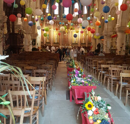Depuis plusieurs années, la Confrérie de la Saint Fiacre fête son Saint Patron le 3ème dimanche de septembre. A cette occasion, l’église Saint Gervais est décorée avec fleurs, fruits et légumes, mis en place par les bénévoles de l’association. Le dimanche, la messe est célébrée par le Père Geoffroy de la Tousche ; de nombreux fidèles s’y retrouvent chaque année. Les fruits et légumes font ensuite l’objet d’une vente de charité aux profit des agriculteurs en difficulté. Merci à Vincent LECOINTRE Président de la Confrérie pour assurer la pérennité de cette action de solidarité.