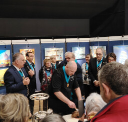 L'Ordre des Canardiers dont une des mission est de promouvoir et faire découvrir la recette du Caneton à la Rouennaise était présent au vernissage du 2ème Salon de peinture PENNELO dans la salle Bourvil à Caudebec-lès-Elbeuf.